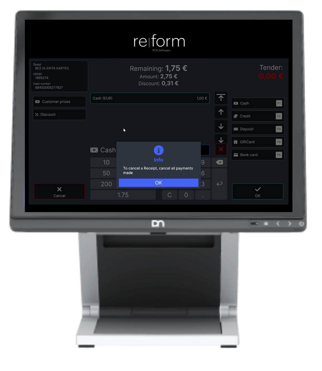 The re:form.POS system constantly monitors the health and communication of its core components, especially the secure fiscal module. If it detects any anomaly – such as a communication failure with the fiscal printer, a data mismatch, or an unauthorized attempt to access the module – the system is designed to respond instantly.